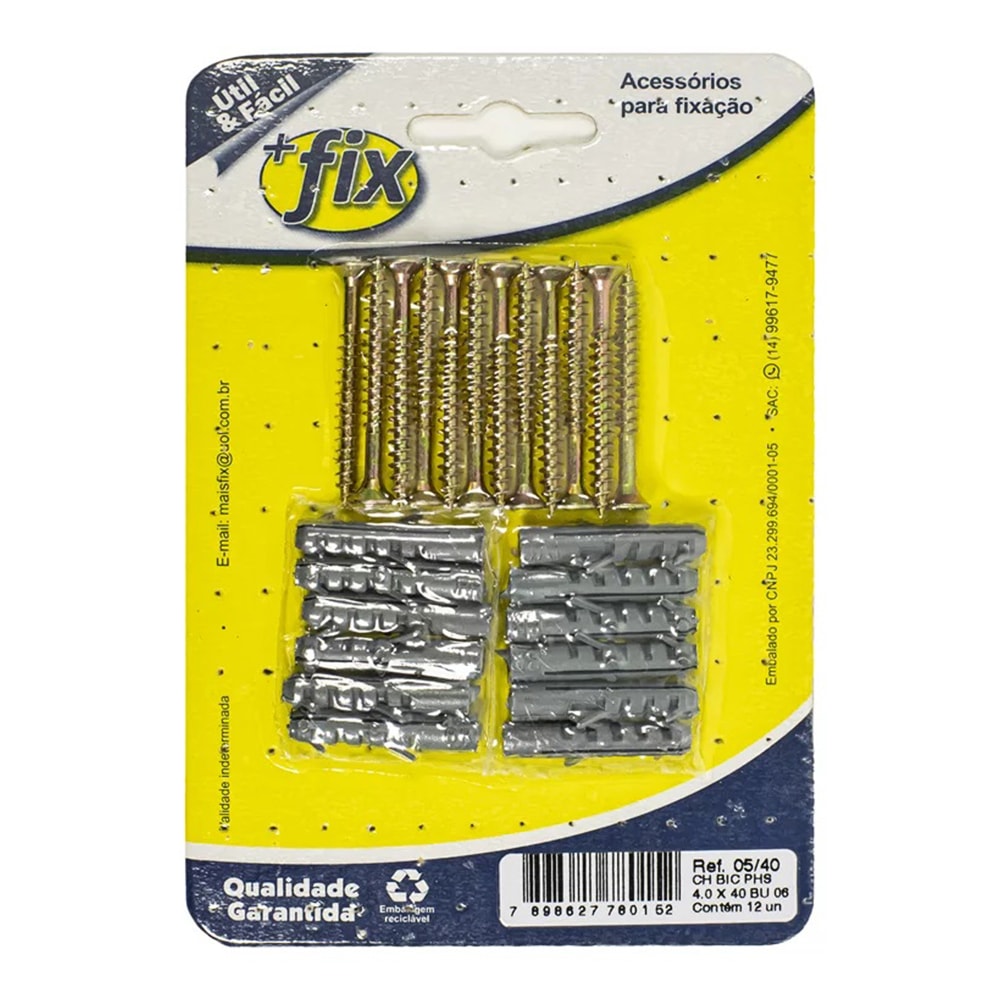 Parafuso +Fix Philips Chata 4x40 Bucha Nº6 12 Peças - R.05/40
