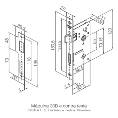 Espessura da porta: Para portas de 30mm a 40mm