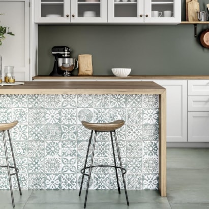 O efeito destonalizado e a cartela de cores em tons pastéis dão aspecto nostálgico aos revestimentos.